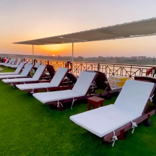A luxury Nile River cruise in Egypt is essentially a fully equipped floating hotel, offering all the comfort and amenities you would expect from a 5-star resort. Onboard facilities typically include a sun deck with panoramic views, an indoor swimming pool, spa and beauty center, restaurant, lounge bar, discotheque, and even gift shops. Guests can also enjoy services like laundry, a safe deposit box, and a variety of entertainment options, ensuring a relaxing and enjoyable journey as you cruise between Egypt’s most iconic ancient landmarks.